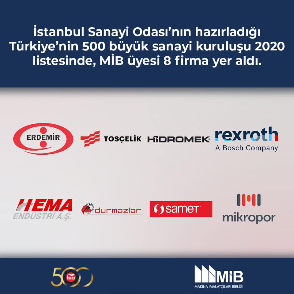 İstanbul Sanayi Odası tarafından her yıl yayımlanan ve bir önceki yılın en büyük sanayi kuruluşlarını açıkladığı ve kamuoyunda ISO 500 olarak bilinen liste 2020 yılı için açıklandı. Firmaların satış rakamları, brüt katma değeri, özkaynakları, aktif toplamları, ihracat ve çalışan sayısı gibi temel verilerinin değerlendirildiği bu listeye MİB üye firmalarından 8 tanesi girdi.